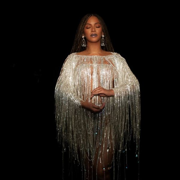 Bey seems like an excellent statue in Timothy White's customized black tulle mermaid robe.