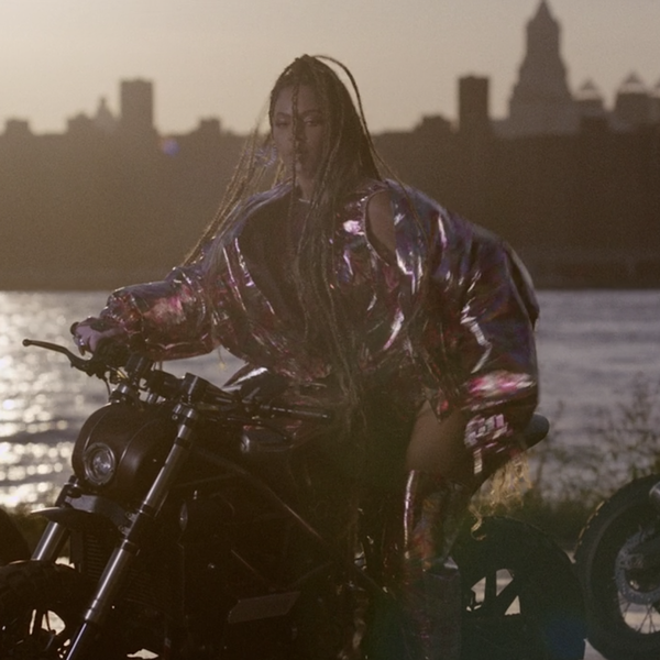 For her biker chick glance, Bey wore a multicolor metal getup from À VIE.